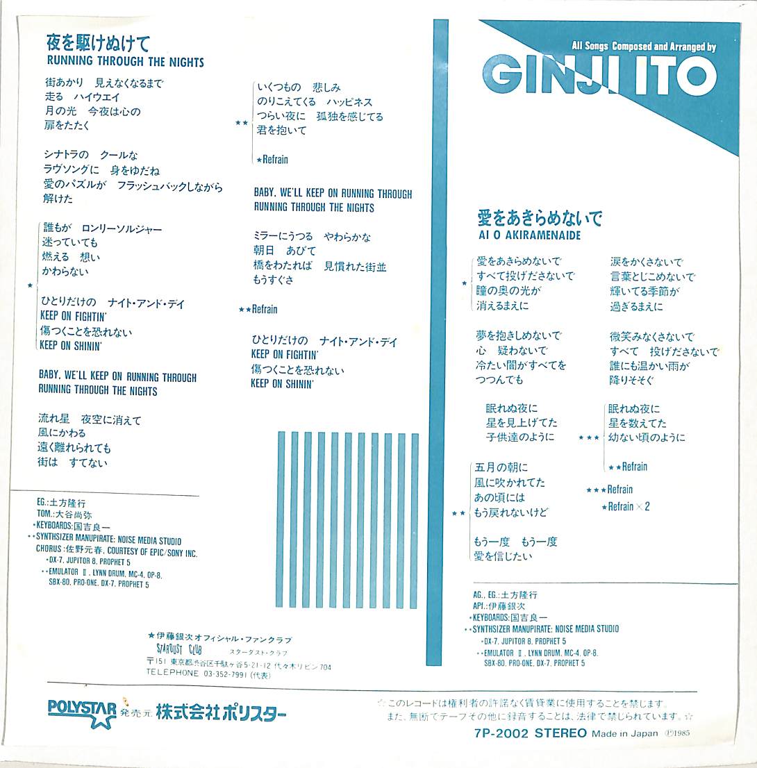 タイトル:夜を駆けぬけて / 愛をあきらめないで(1985年)