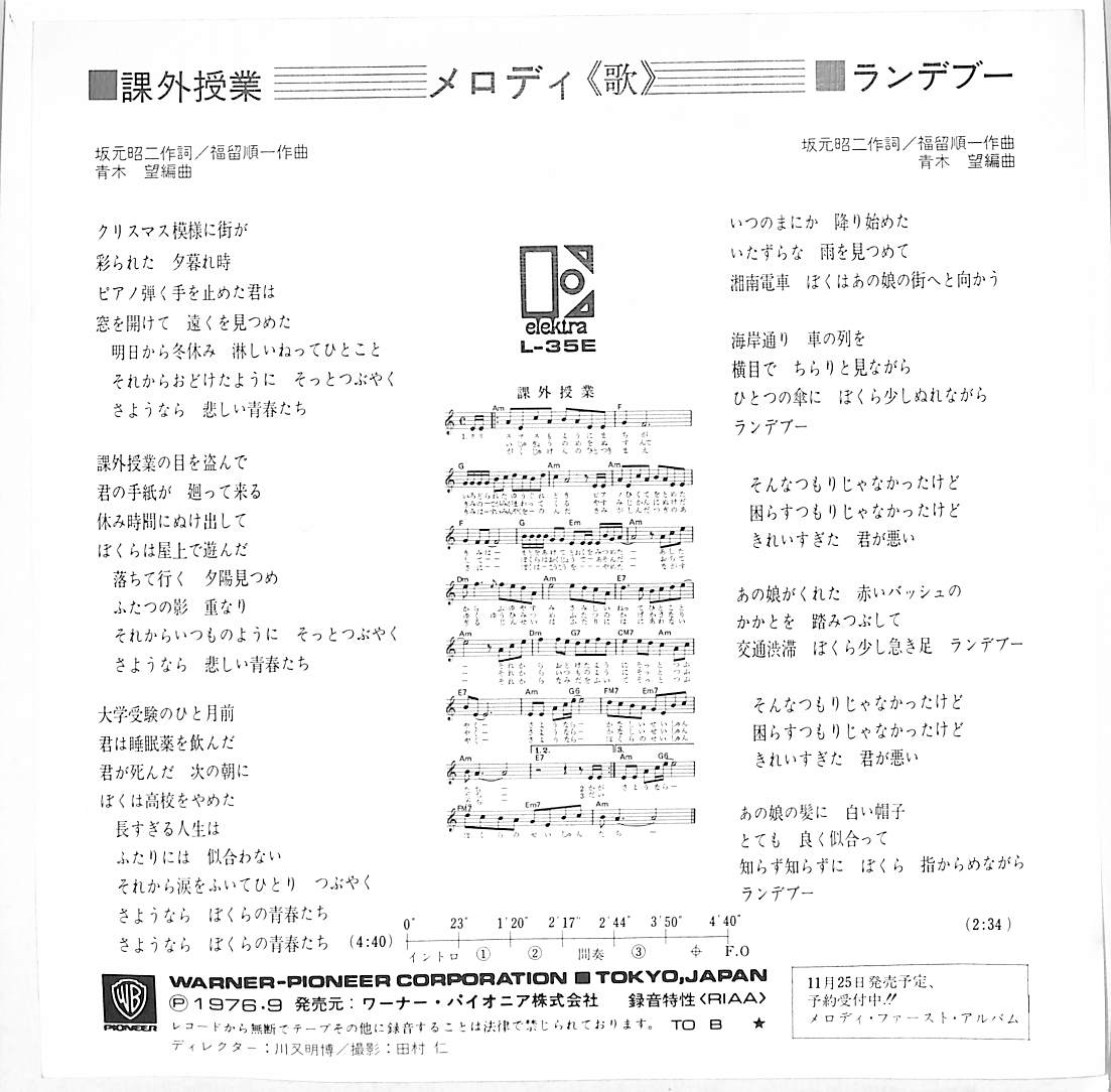 タイトル:課外授業 / ランデブー(1976年・フォークロック)