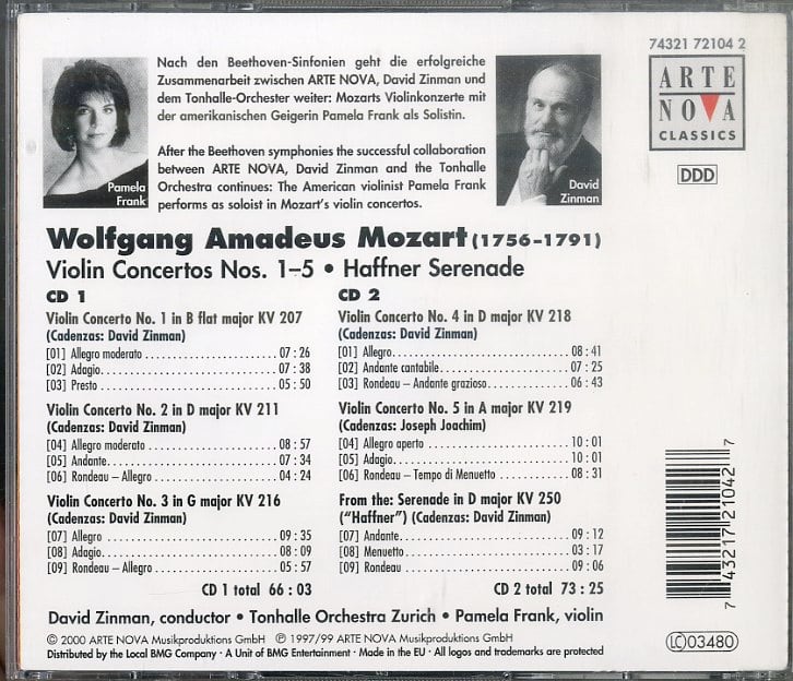 パメラ・フランク / Mozart Violin Concertos Nos.1-5・Haffner Serenade