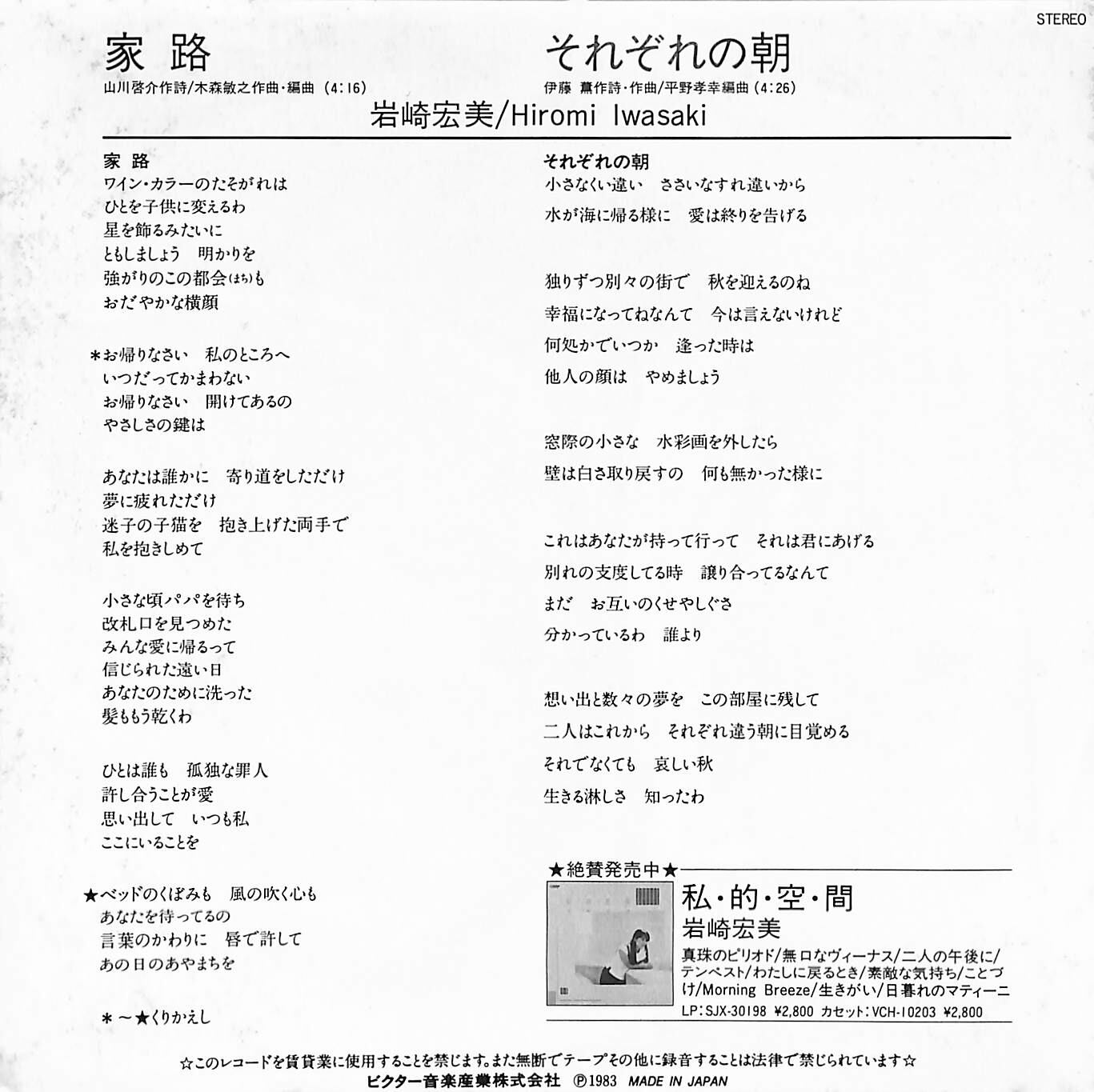 岩崎宏美 / 家路 / それぞれの朝