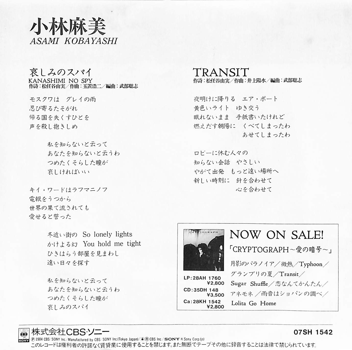 小林麻美 / 哀しみのスパイ / Transit