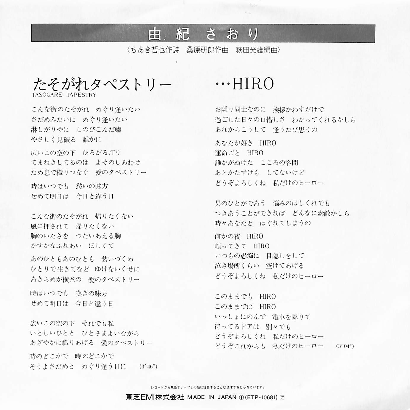 由紀さおり / たそがれタペストリー / ・・・HIRO