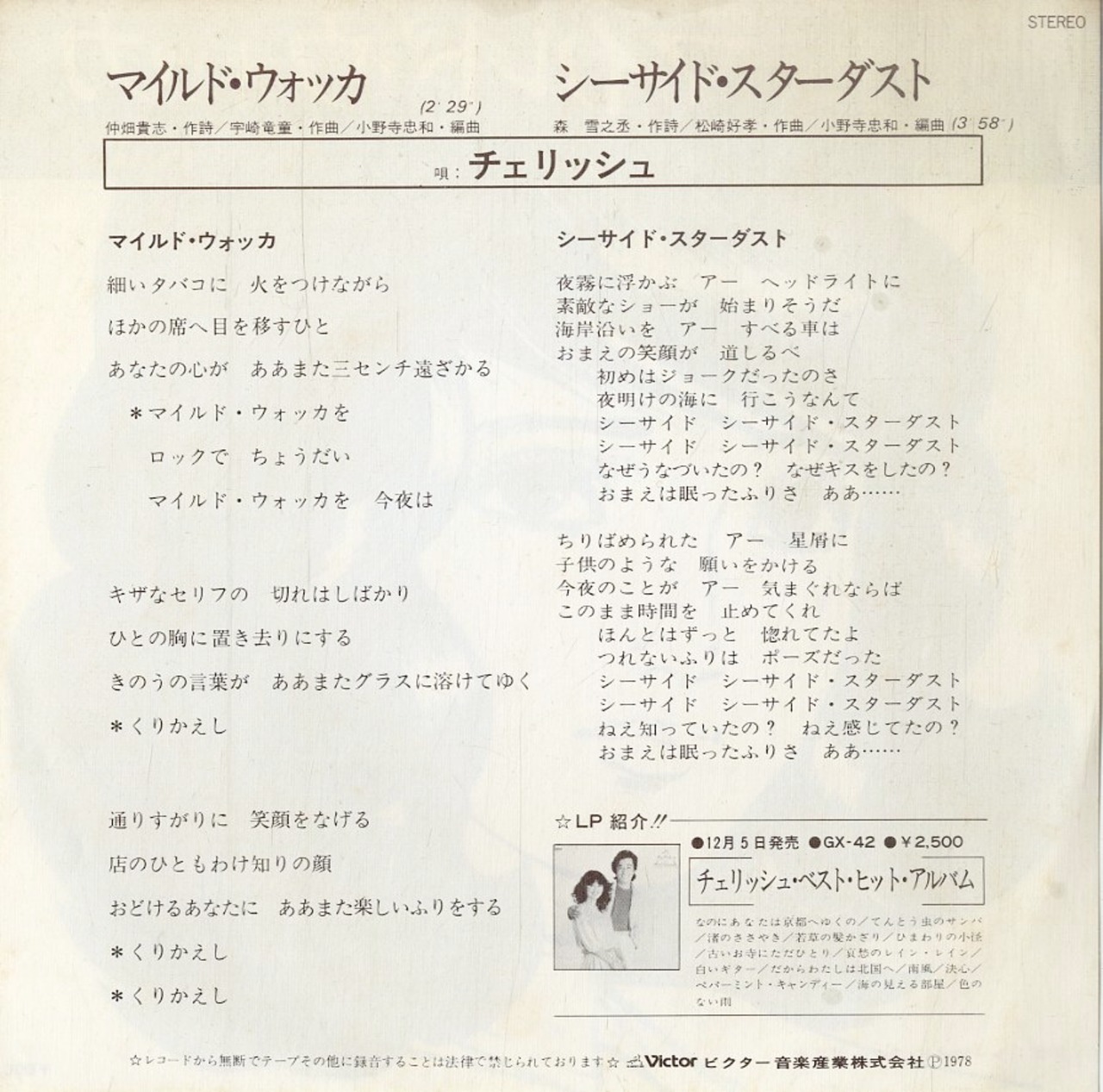 タイトル:マイルド・ウォッカ / シーサイド・スターダスト(1978年)