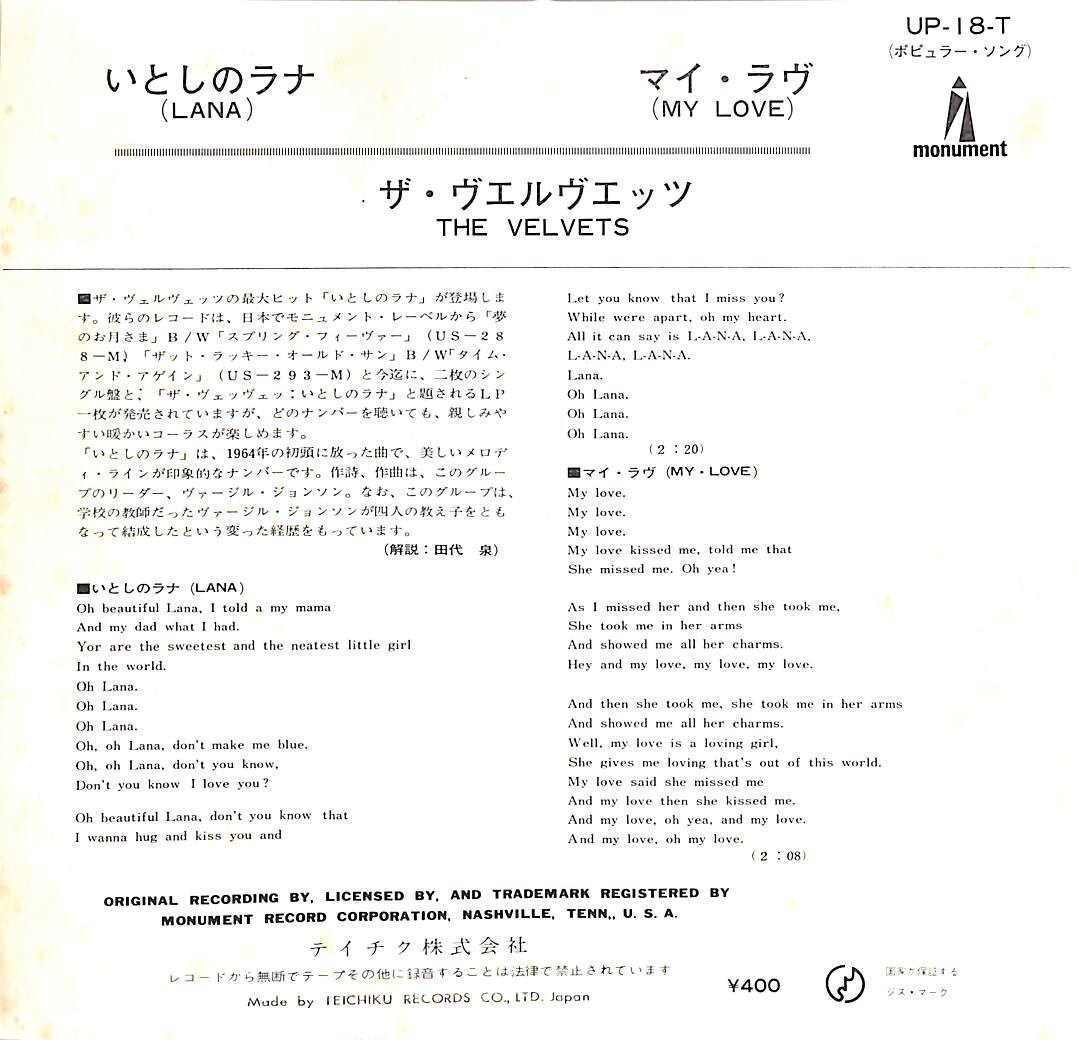 ザ・ヴェルヴェッツ / いとしのラナ / マイ・ラヴ