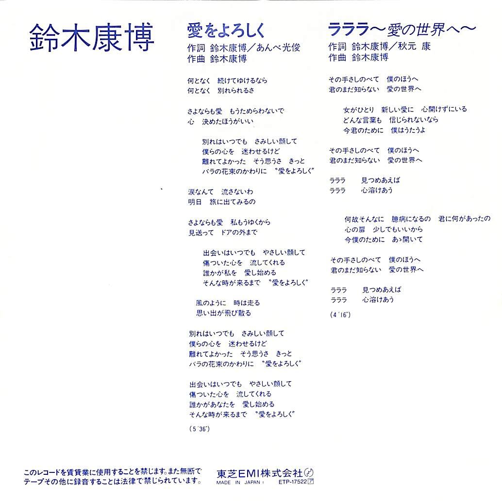 鈴木康博 / 愛をよろしく / ラララ~愛の世界へ~