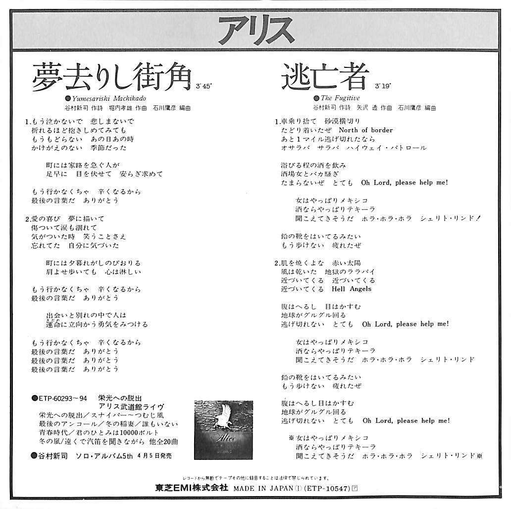 アリス / 夢去りし街角 / 逃亡者