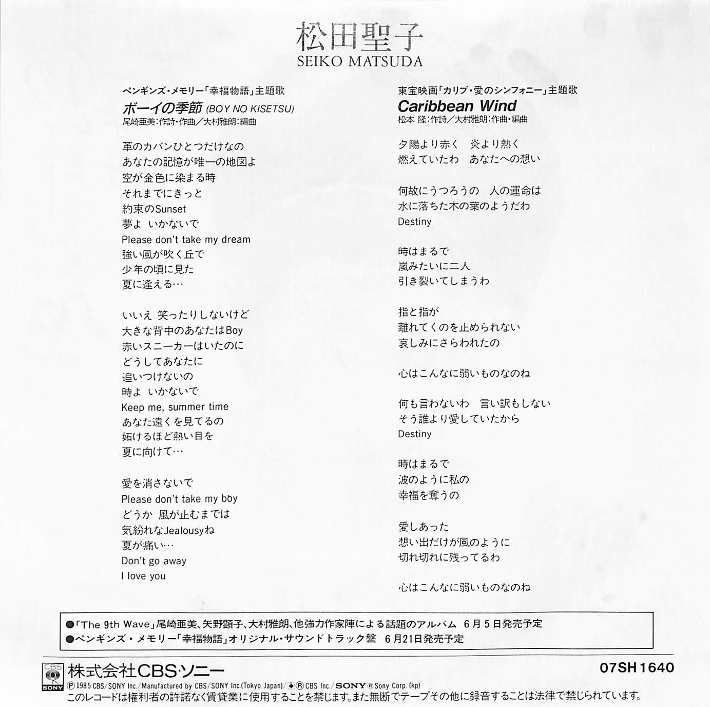 松田聖子 / ボーイの季節 / Caribbean Wind