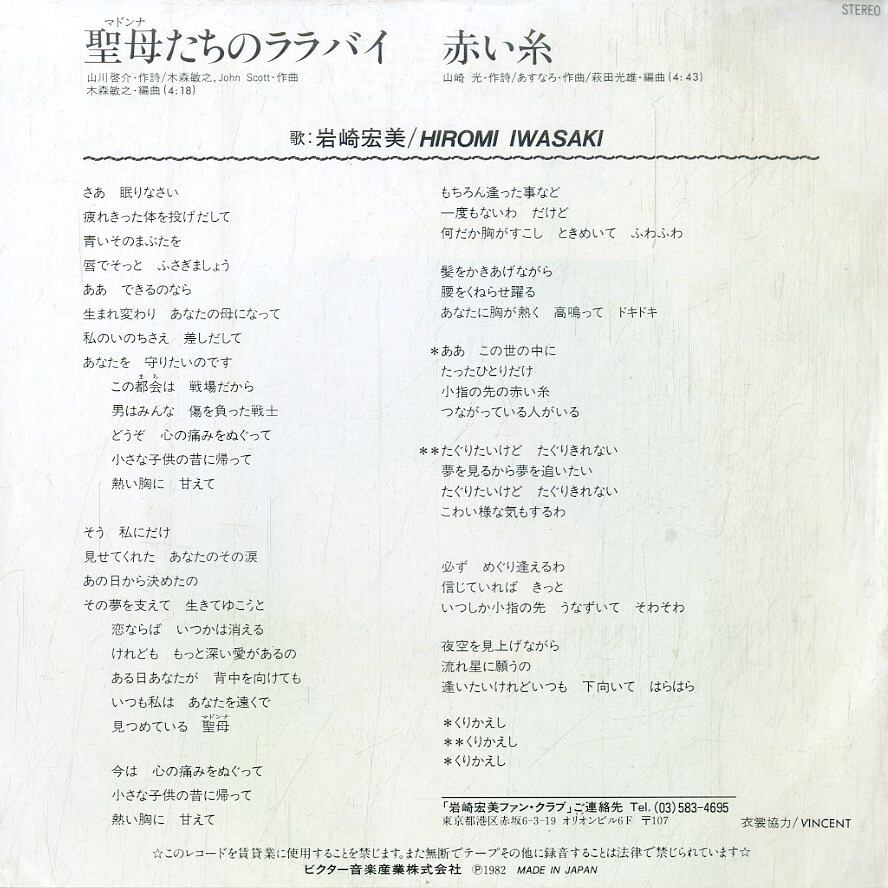岩崎宏美 / 火曜サスペンス劇場 EDテーマ 聖母たちのララバイ / 赤い糸
