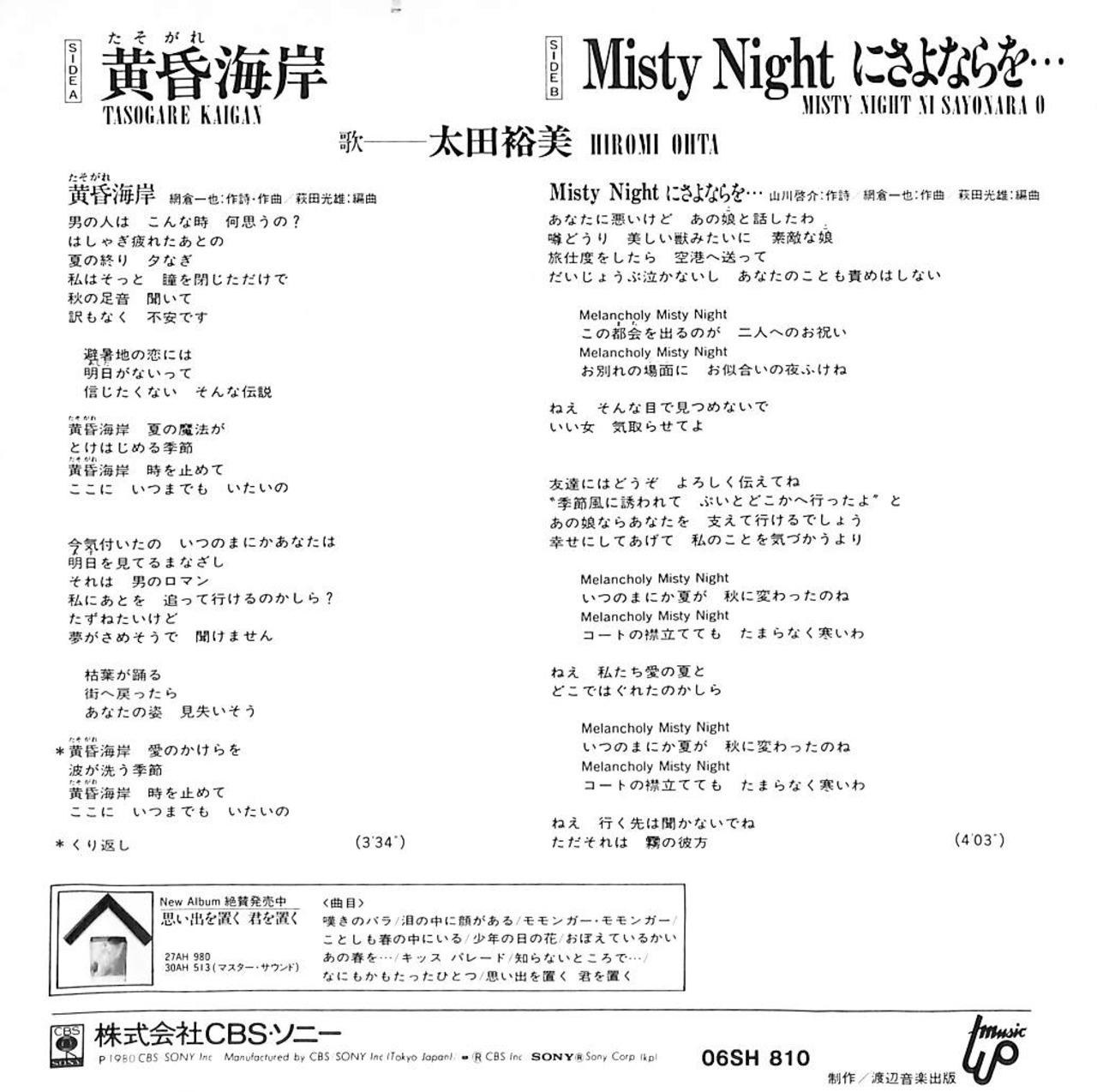 太田裕美 / 黄昏海岸 / Misty Nightにさよならを・・・