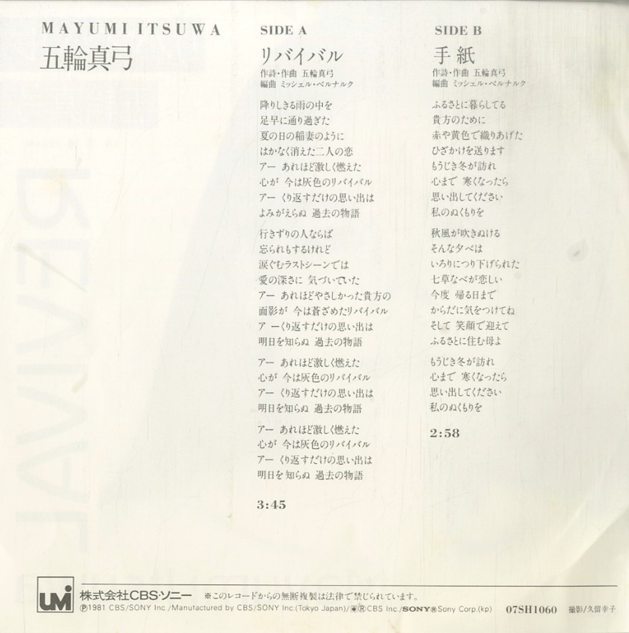 五輪真弓 / リバイバル / 手紙