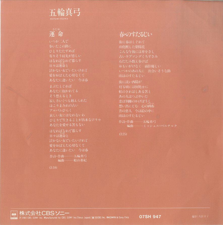 五輪真弓 / 運命 / 春・のすたるじい