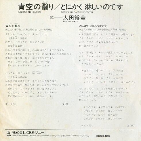 タイトル:青空の翳り(作詞・来生えつこ 作曲・濱田金吾 編曲・大村雅朗) / とにかく淋しいのです