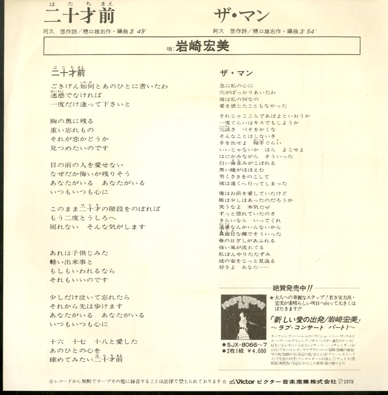 岩崎宏美 / 二十才前 / ザ・マン