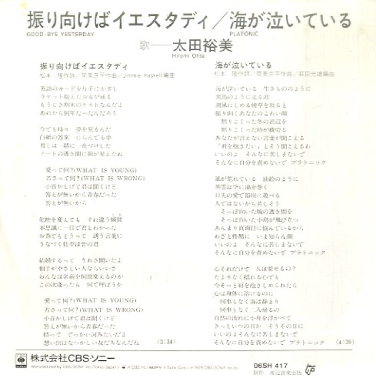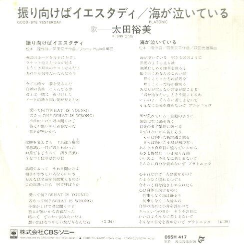 太田裕美 / 振り向けばイエスタディ / 海が泣いている