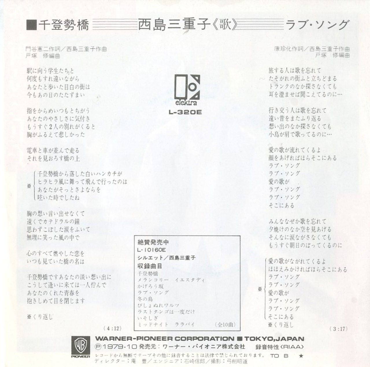 タイトル:千登勢橋 / ラブ・ソング(作曲・西島三重子)