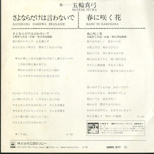 五輪真弓 / さよならだけは言わないで / 春に咲く花