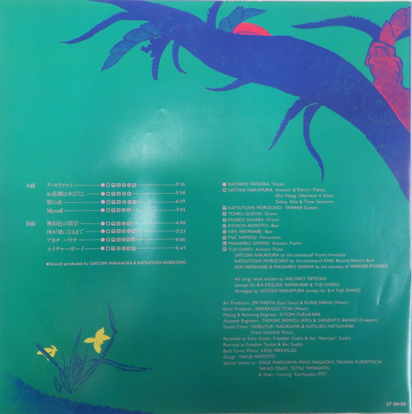コメント:森園勝敏(G・プロデュース) / 中村哲(P・Synth・Sax・プロデュース) / 大野雄二(AP)