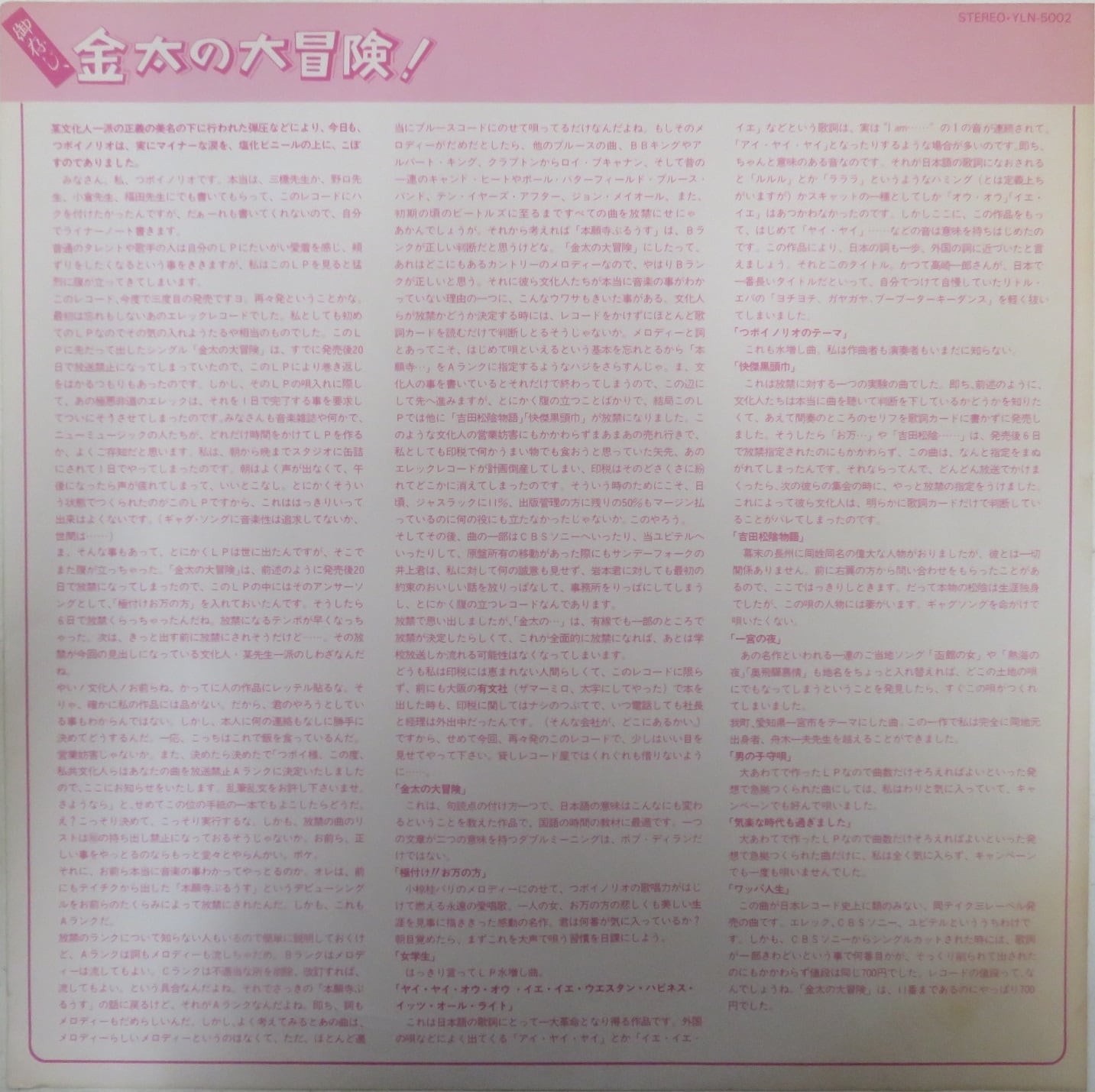 タイトル:つぼイノリオの大冒険 / 御存じ、金太郎の大冒険!