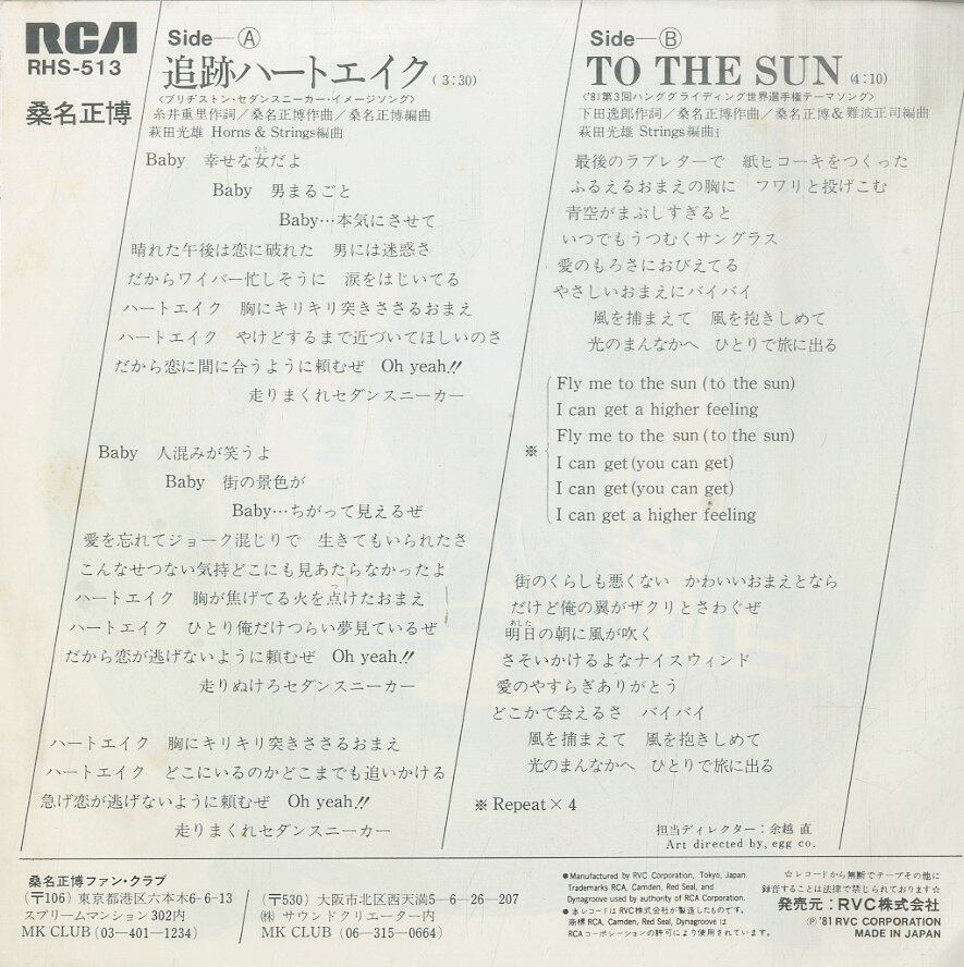 タイトル:追跡ハートエイク / To The Sun (1981年・糸井重里・下田逸郎作詞・エアギタージャケ!)