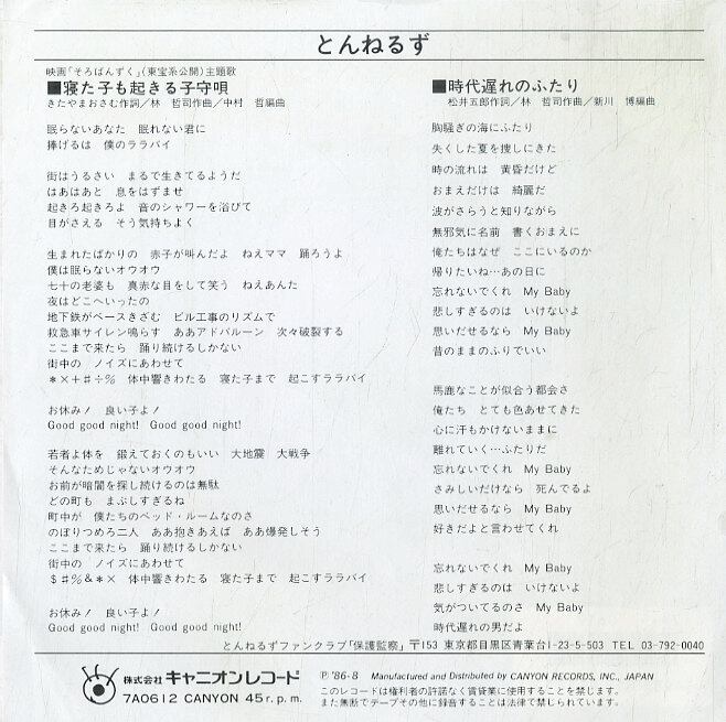 とんねるず / 寝た子も起きる子守唄 / 時代遅れのふたり