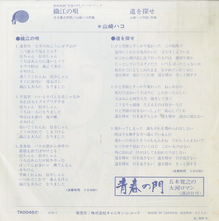 タイトル:織江の唄 / 道を探せ(1981年・五木寛之作詞・東映映画「青春の門」テーマソング)